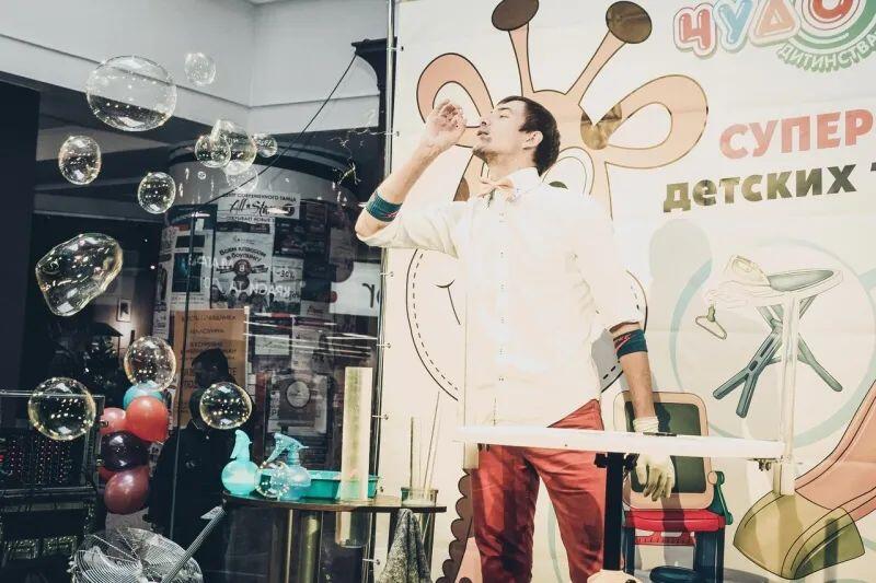 - Алексей Семенников порадует вас необычайно неожиданными трюками с мыльными пузырями. Вы окажетесь в интерактивной сказке, где мыльные пузыри переливаются радужными красками, не лопаются в руках, наполняются дымом и даже горят.