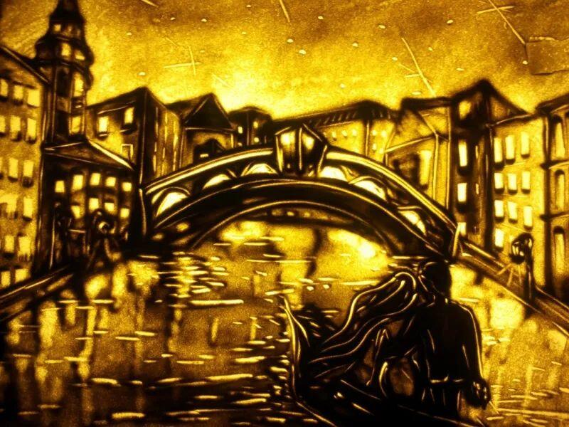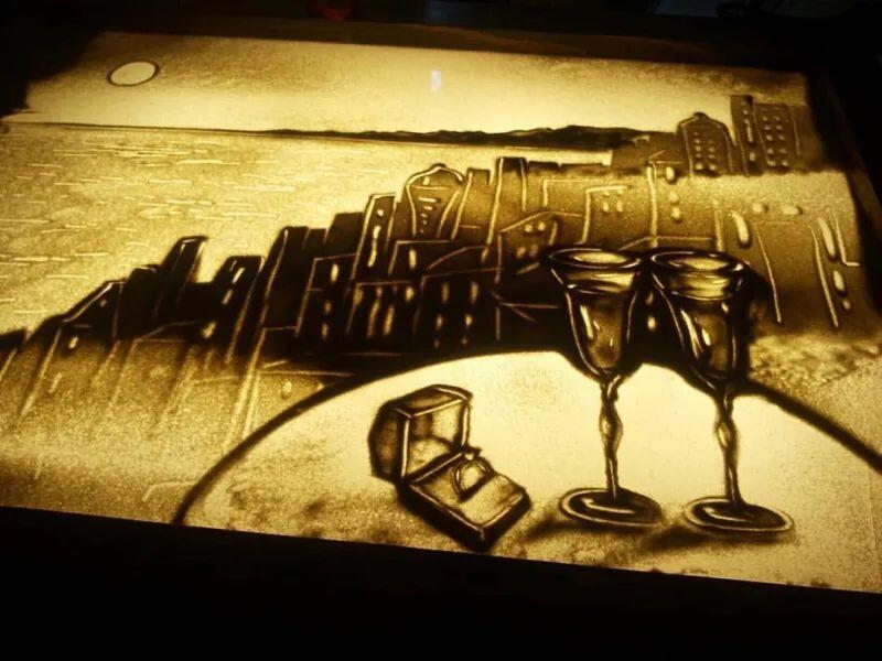 Песочное шоу было просто великолепным. Артисты создали романтичную атмосферу и отображали картинки настолько реалистично, что мы попадались себя на мысли, что они оживают на экране. Это было безумно красиво и трогательно. Мы были в восторге.