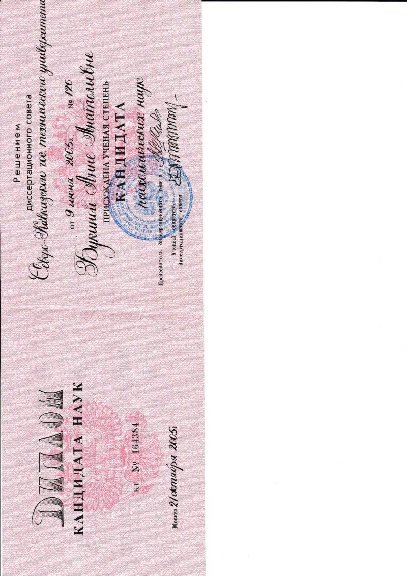 - СевКавГТУ, кандидат психологических наук, 2005 г.