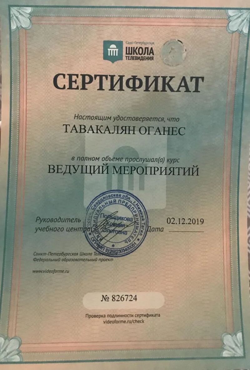 - Школа телевидения, ведущий мероприятий, 2019 г.