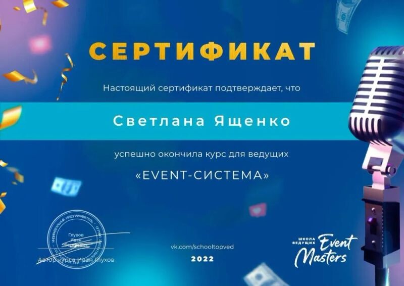 - Event Masters, курс для ведущих «Event Система», 2022 г.