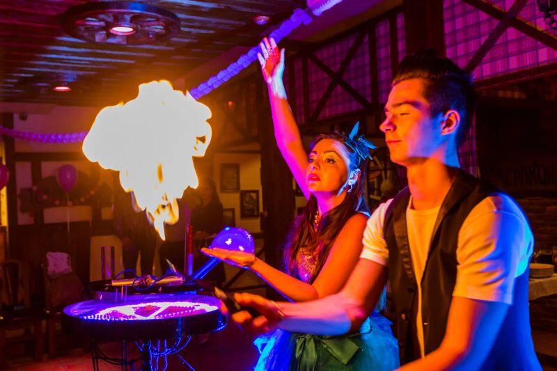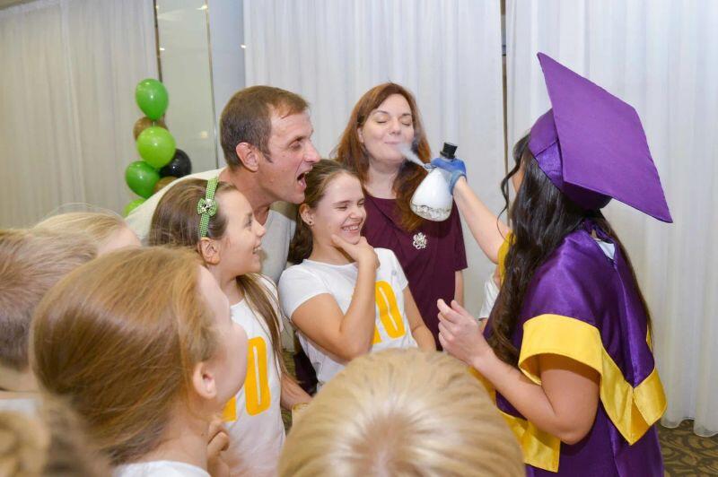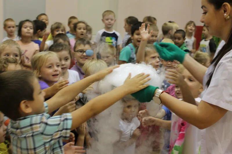 - «Научный театр» – увлекательное химическое развлечение как для маленьких, так и для детей постарше. Магически дымящиеся колбы, арктическое дыхание, самонадувающиеся шары, безумная газировка, криомороженое – вот только малая часть того, чем могут удивить артисты. Но самое главное – это возможность принять участие в экспериментах. Крио-шоу может быть отличной альтернативой обычной анимационной программе практически на любом детском мероприятии. Шоу мыльных пузырей – зрелищное, завораживающее, подходит практически для любого праздника – от детского дня рождения до концертной программы. В программе мыльные пузыри – от маленьких до гигантских, дымные и огненные, завораживающие трюки на светящемся столе и белые летающие пузыри.