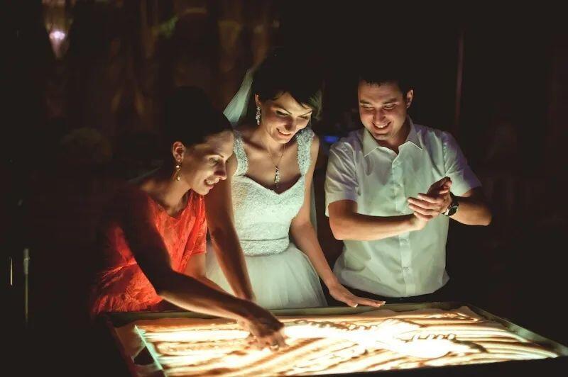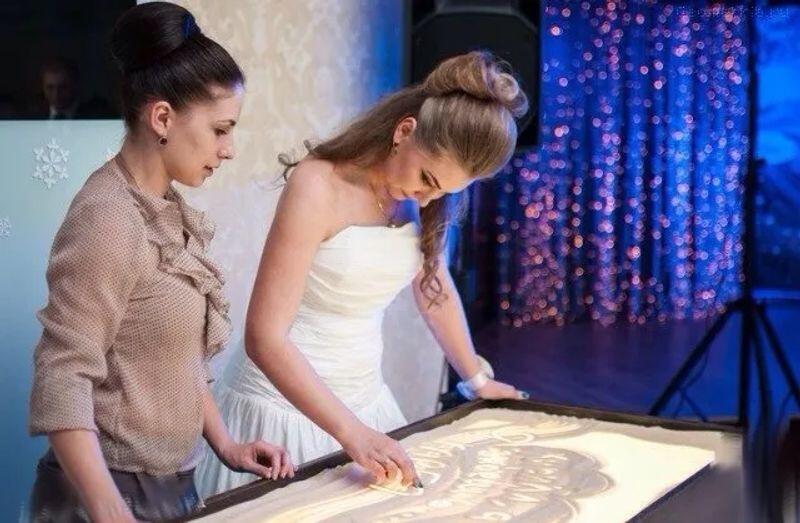 - Песочное шоу 12000 - 30000 ₽ за усл.Песочное шоу на свадебном торжестве – 12000 руб.