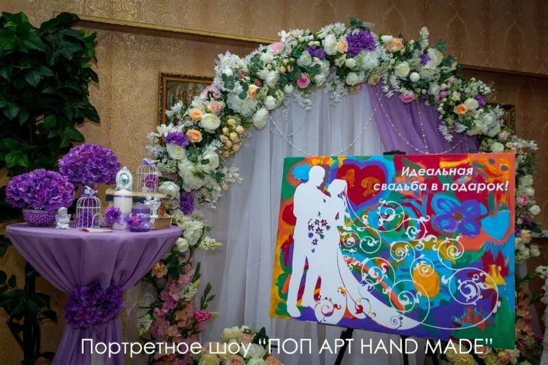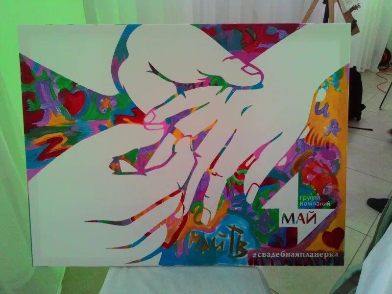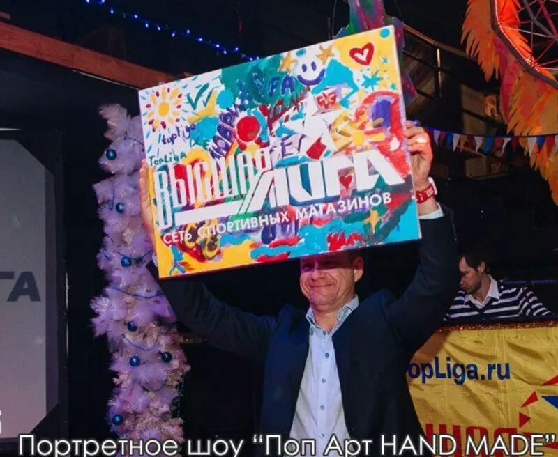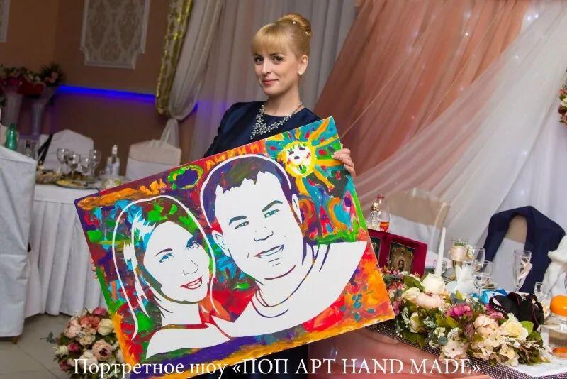 - Картину рисуют все гости акриловыми красками, далее картина отправляется на сушку (30 мин.), затем снова выносится в зал для финального штриха. Очень яркий и эмоциональный финал! Никого не оставит равнодушным! Портретное шоу «ПОП АРТ HAND MADE» – первое и единственное на Юге России!