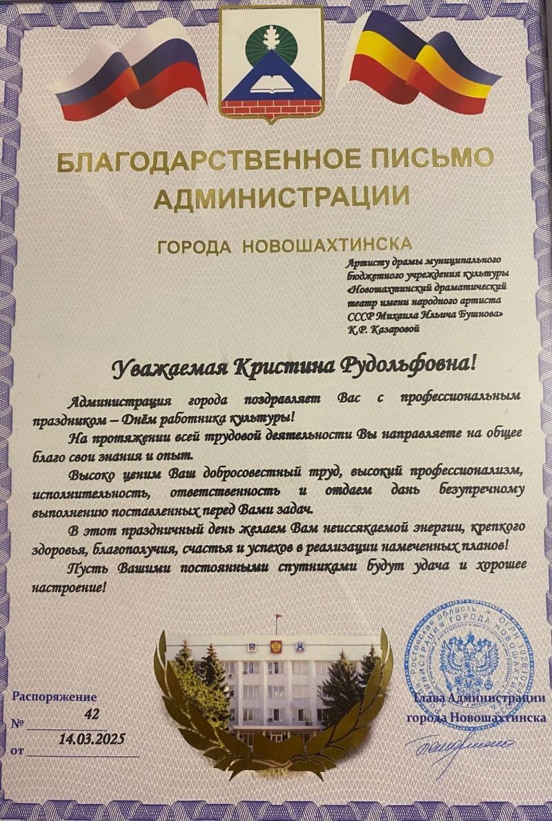 ► Рудольфовна Казарова Кристина выступает территориально: г. Ростов-на-Дону, а также проводит онлайн-выступления или консультации.