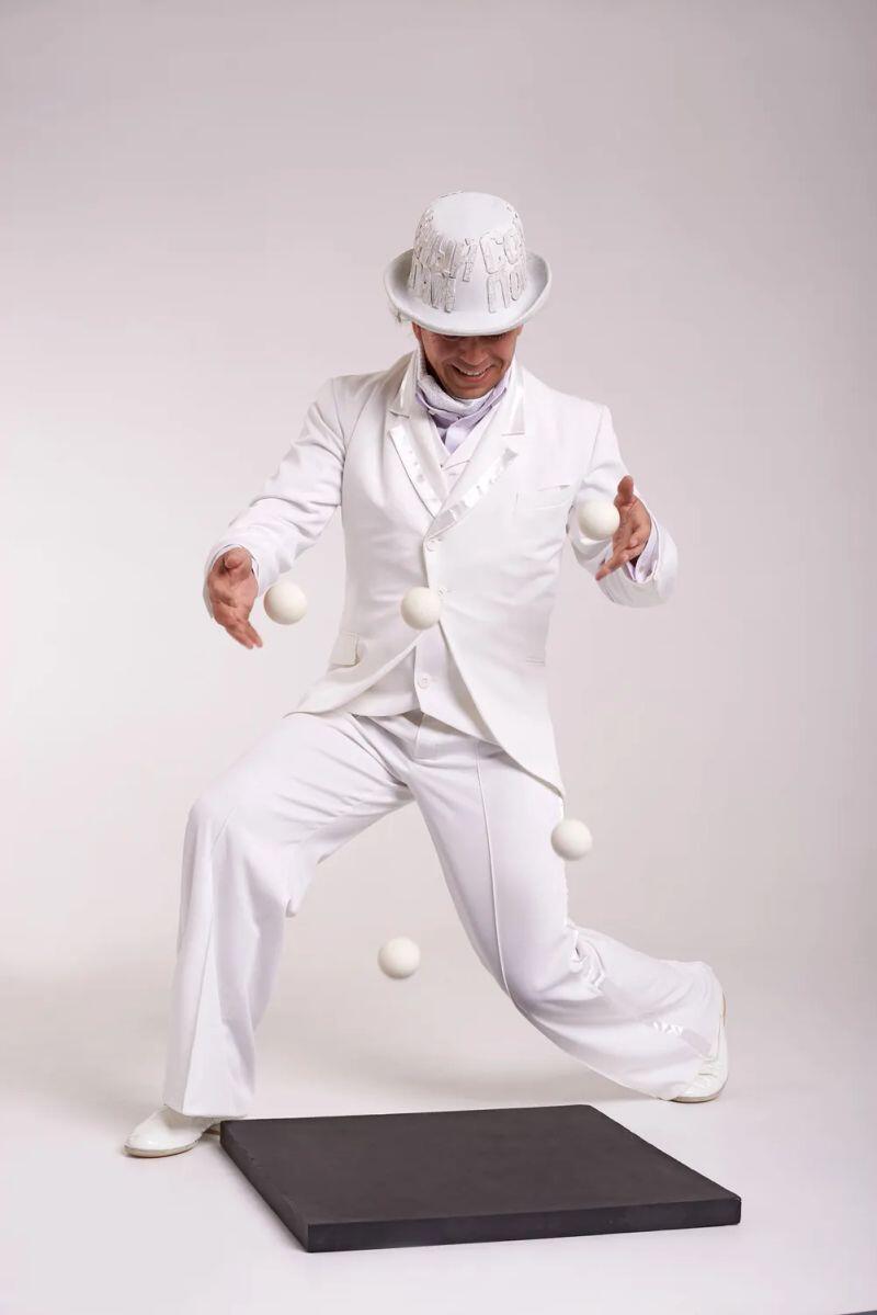 - Жонглёры 8000 ₽ за усл.Белый жонглер – невероятные балансы и трюки в стиле венецианских живых статуй.