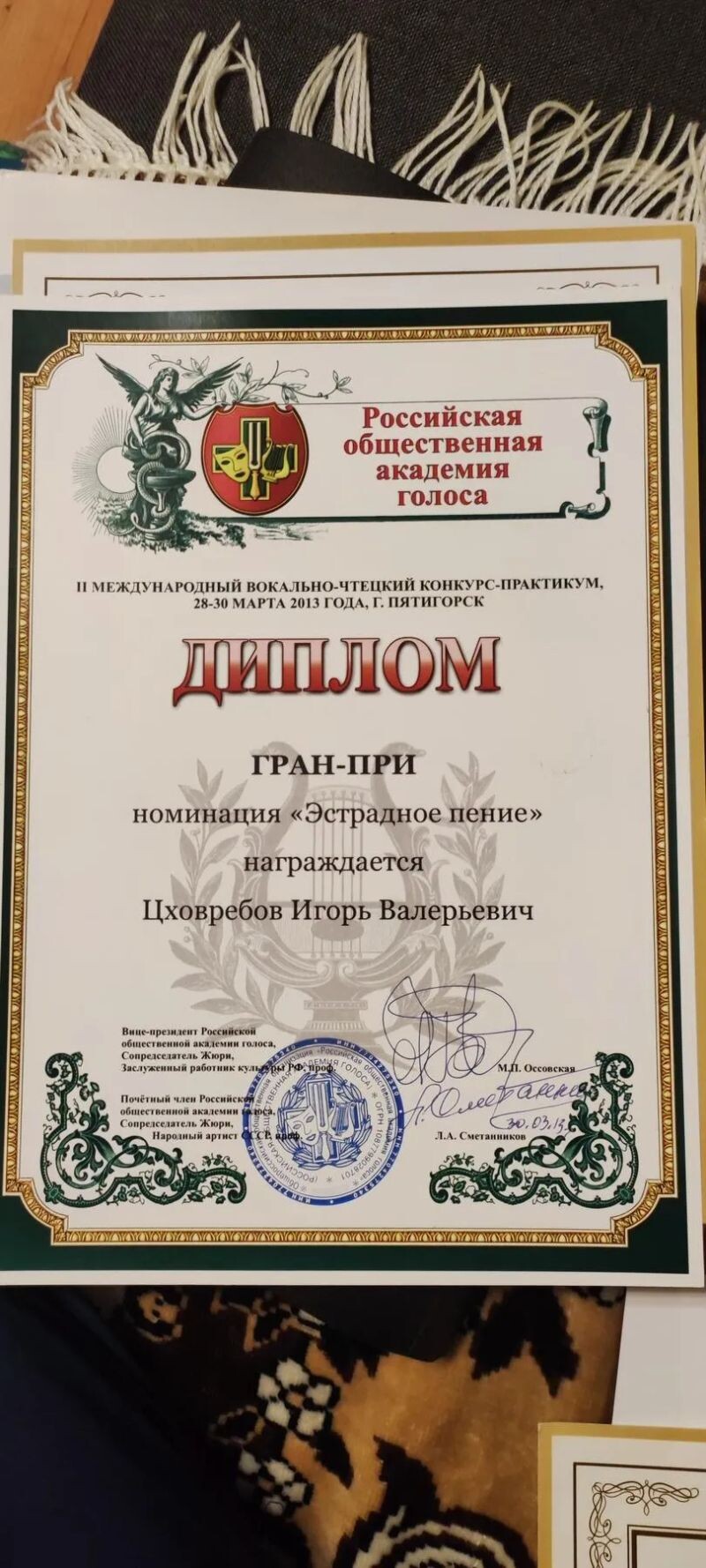 - II Международный вокально-чтецкий конкурс-практикум, гран-при в номинации «Эстрадное пение», 2013 г.