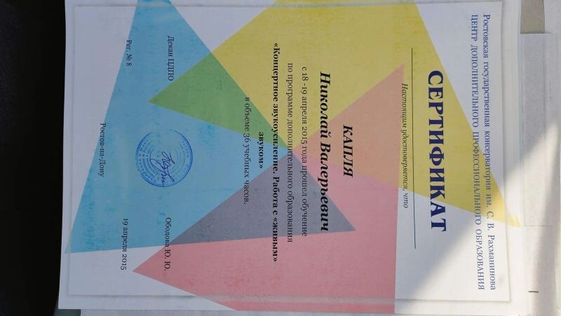 - Концертное звукоусиление. Работа с живым звуком, 2015 г.