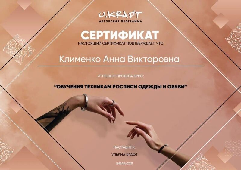 - Курс обучения кастомизации одежды Ульяны Крафт (с 2021 г.).
