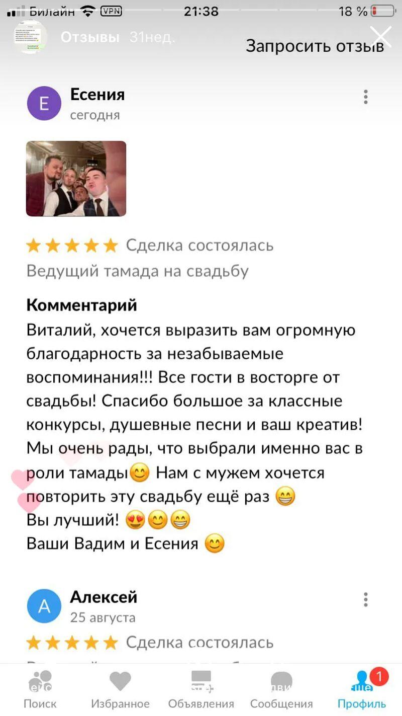 1 клиент уже оставил отзыв — прочитайте, прежде чем выбрать тамады.