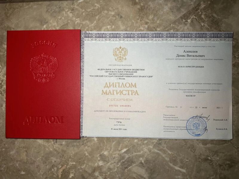 - Российский государственный университет правосудия, юриспруденция, магистр, 2021 г.