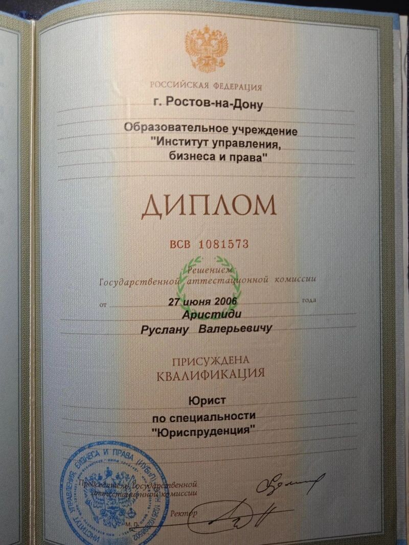 - Институт управления, бизнеса и права, юрист, 2001–2006 гг.