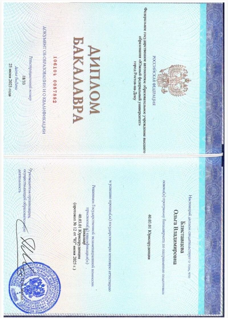 - Юридический факультет ЮФУ бакалавриат. На данный момент продолжаю учиться в магистратуре, 2021–2025 гг.