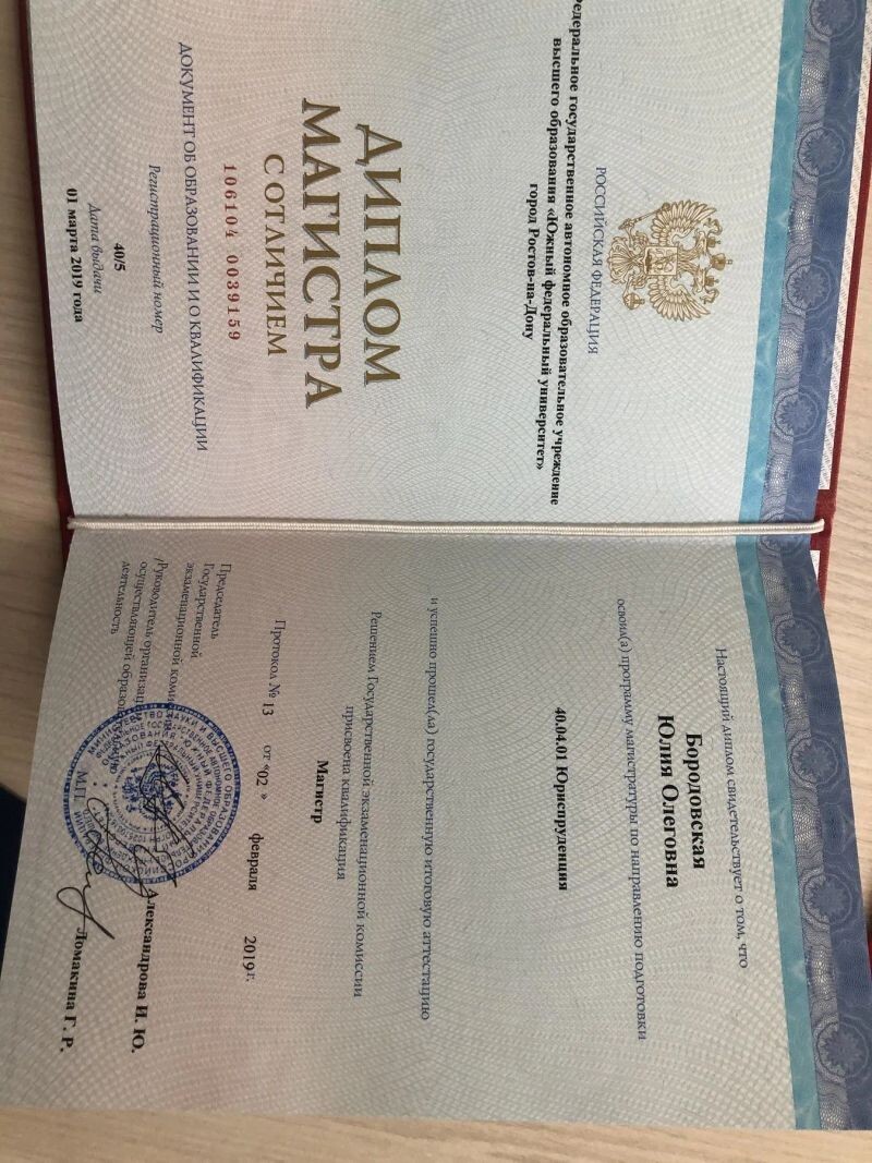 ► Бородовская Юлия Олеговна принимает территориально: г. Ростов-на-Дону, а также проводит онлайн-консультации.