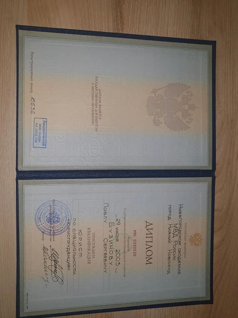 - Нижегородская академия МВД России, юриспруденция, 1999–2003 гг.