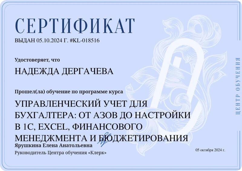 - Управленческий учет для бухгалтера (с 2024 г.).