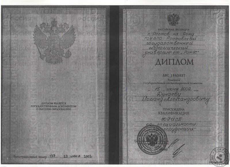 - Ростовский государственный экономический университет РИНХ, юрист, 1997–2002 гг.