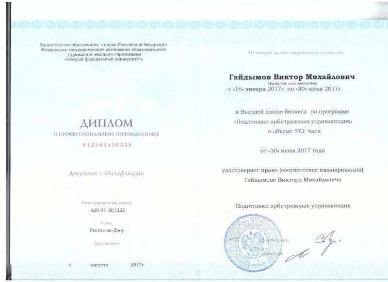 - ЮФУ, подготовка арбитражных управляющих, 2017 г.