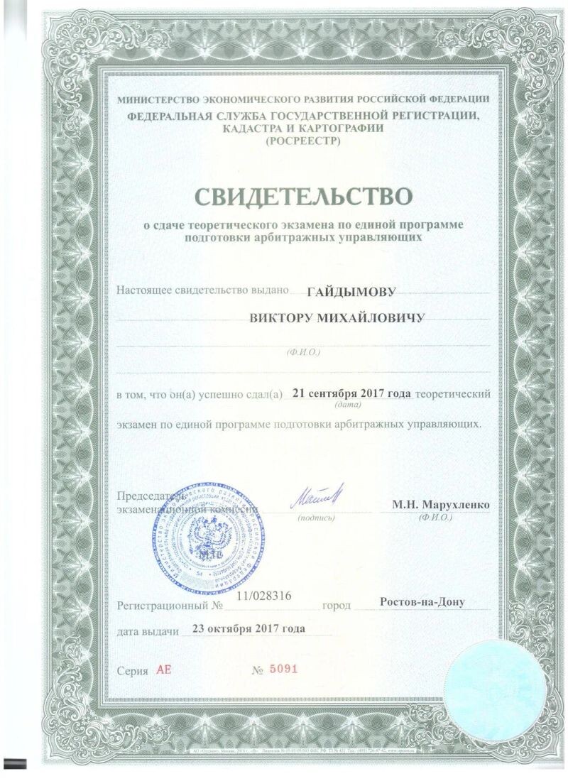 - Свидетельство о подготовке арбитражных управляющих, 2017 г.