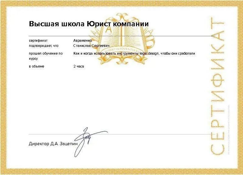 - Высшая школа юрист компании, курс «Как и когда использовать инструменты legal design, чтобы они сработали», 2022 г.