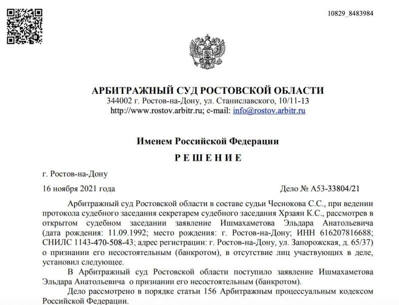 - Решение Арбитражного Суда (с 2022 г.).