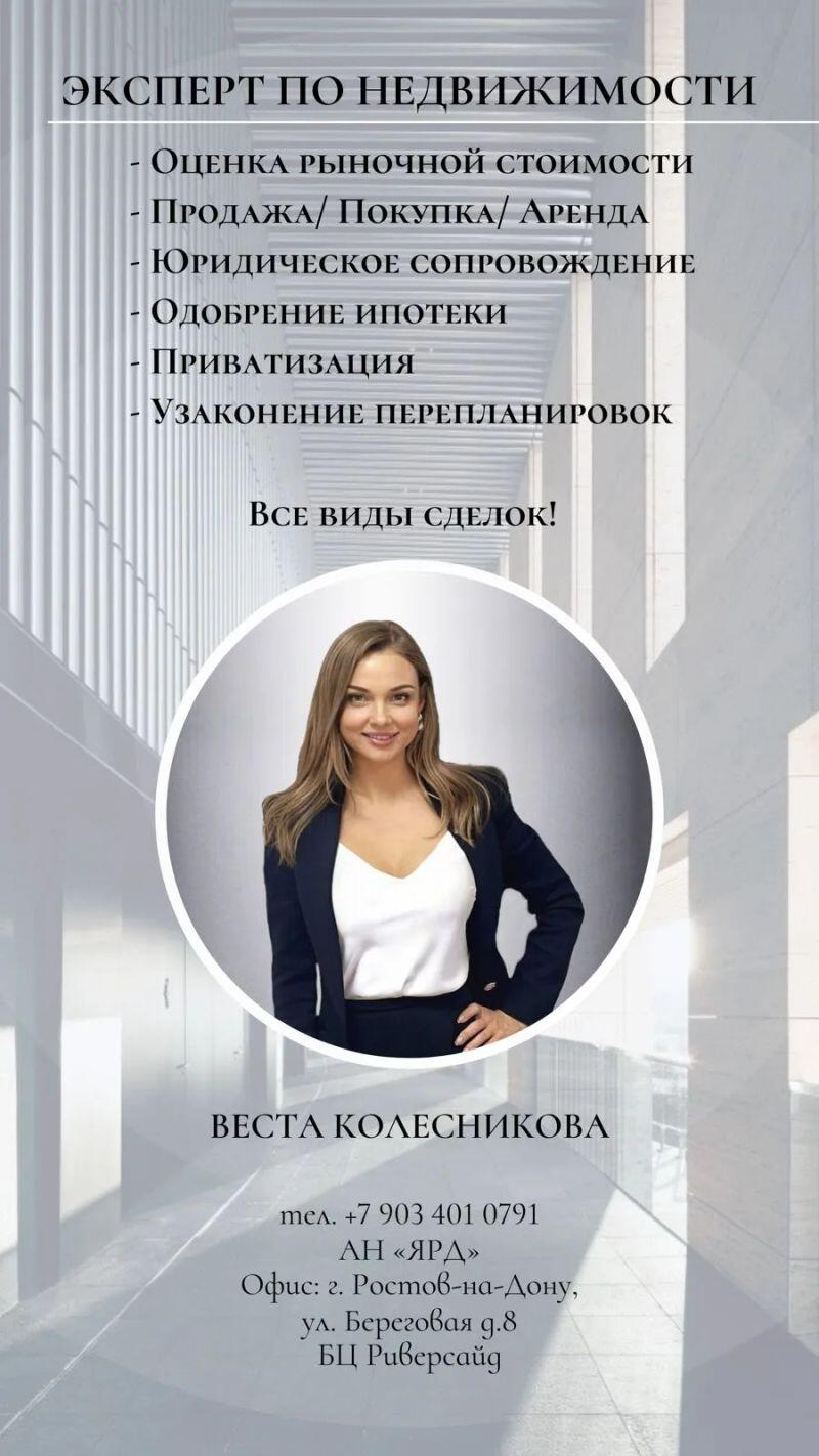 ► Связаться с Колесниковой Вестой Юрьевной и заказать услугу можно за пару минут. Просто нажмите на кнопку «Связаться со специалистом» и заполните короткую форму.