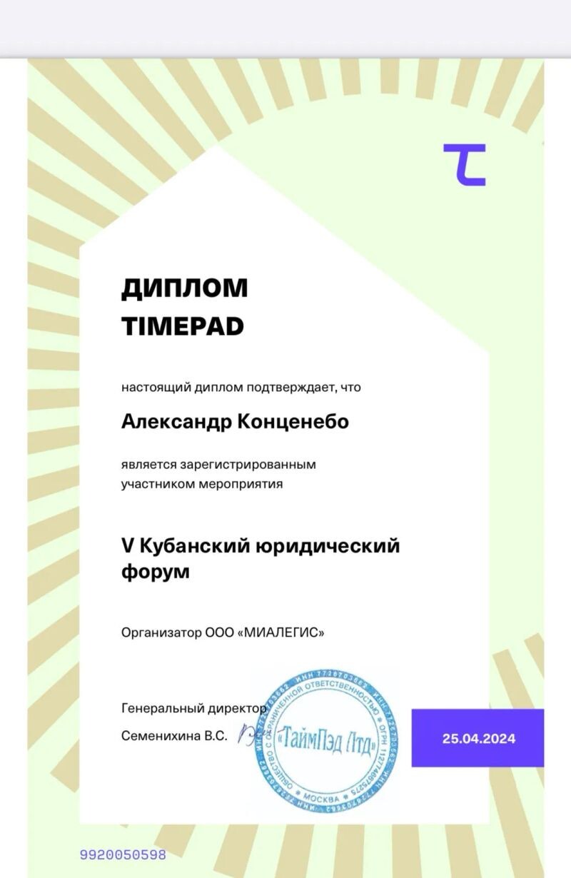 - ООО «ТаймПэд Лтд», V Кубанский юридический форум, участие, 2024 г.