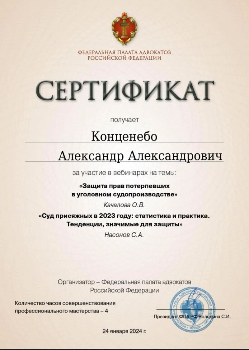 - Федеральная палата адвокатов РФ, участие в вебинарах, 2024 г.