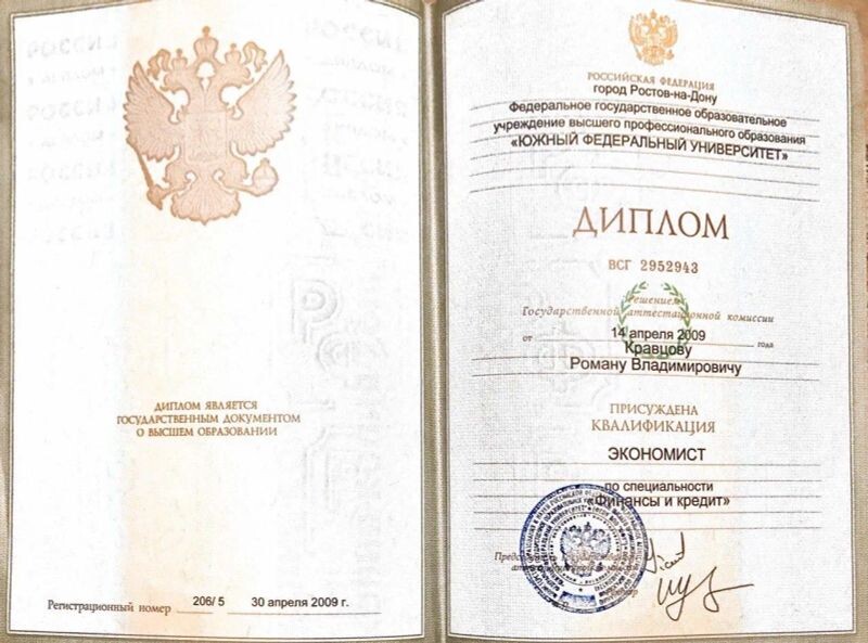 - Южный федеральный университет, экономист, 2003–2009 гг.