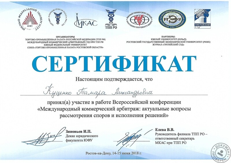 Обратилась к Тамаре Александровне Куценко по вопросу участия в арбитражном суде.