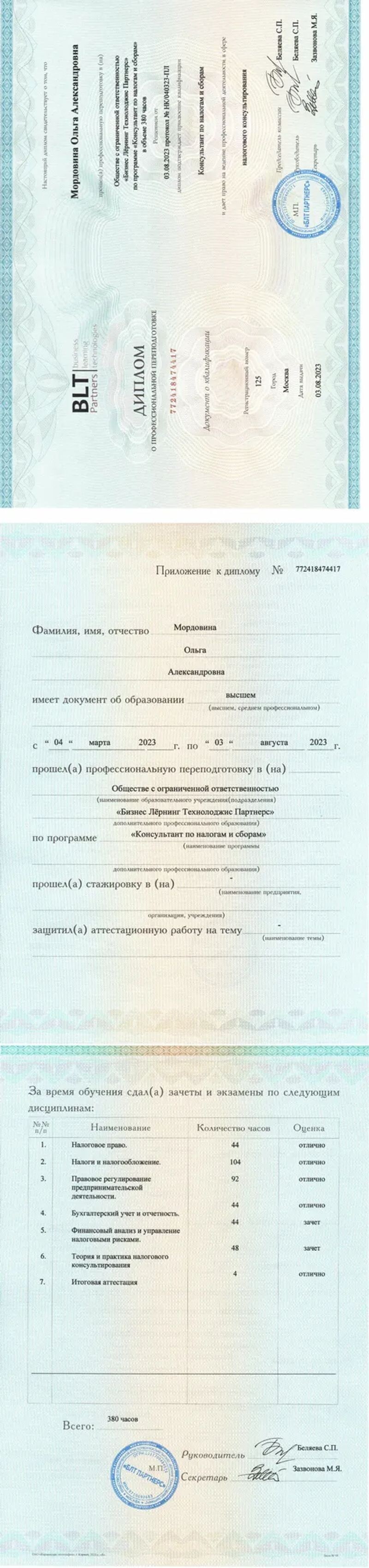 - ООО «БЛТ партнерс», консультант по налогам и сборам, 2023 г.