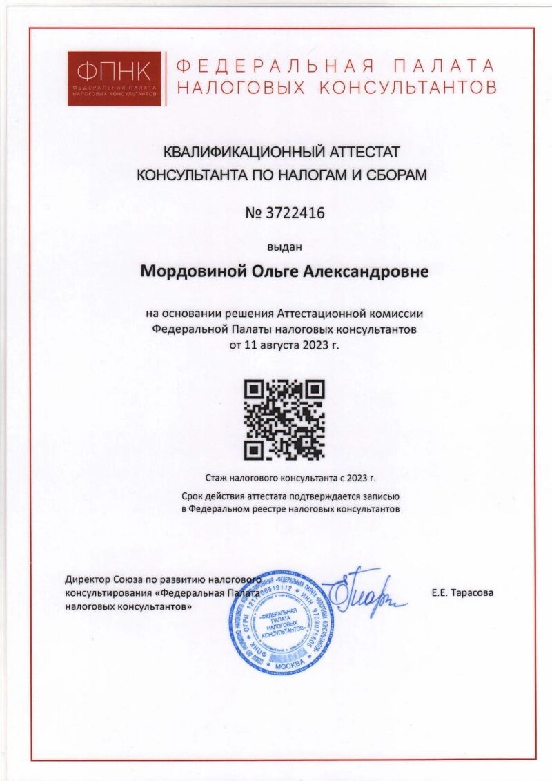 - ФПНК, квалификационный аттестат консультанта по налогам и сборам, 2023 г.