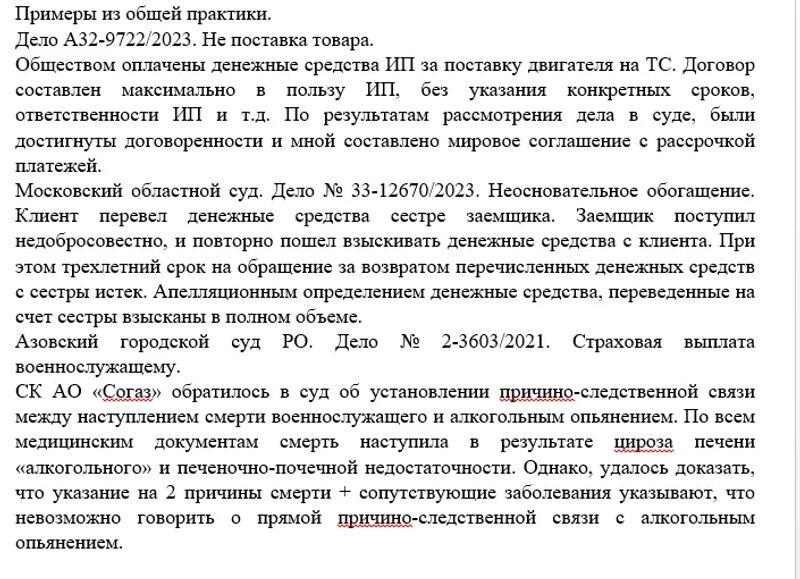 Кроме того, Дмитрий проявляет внимательность к деталям, что особенно важно в сложных юридических вопросах, таких как разработка судебных претензий и кассационных жалоб. Клиенты высоко ценят его способность вникать в самые тонкие нюансы дела и находить оптимальные решения.