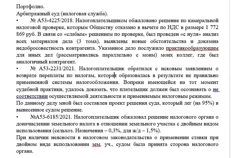 Дмитрий прекрасно разбирается в юридических вопросах работы налоговой службы и законодательства. Оперативно помог подготовить необходимый документы, проработать стратегию общения и четкую позицию. Надеюсь вопрос будет решен. Благодарю за поддержку и внимательность к деталям. Очень вдумчивый человек всем рекоммендую.