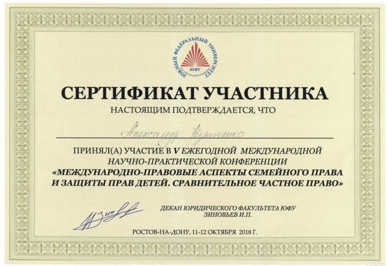 - Участие в научно-практической конференции «международно-правовые аспекты семейного права и защиты прав детей, сравнительное частное право» (с 2018 г.).