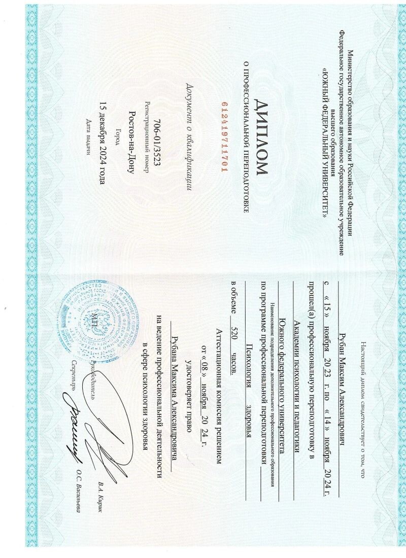 - Южный федеральный университет, Академия психологии и педагогики, психология здоровья, 2023–2024 гг.
