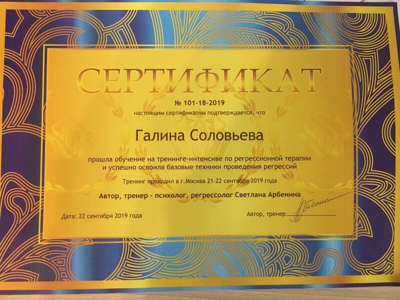- Тренинг-интенсив по регрессивной терапии, 2019 г.
