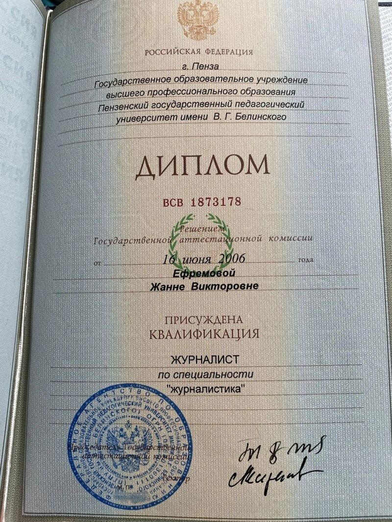 - ПГПУ им. В.Г. Белинского, журналист, 2001–2006 гг.