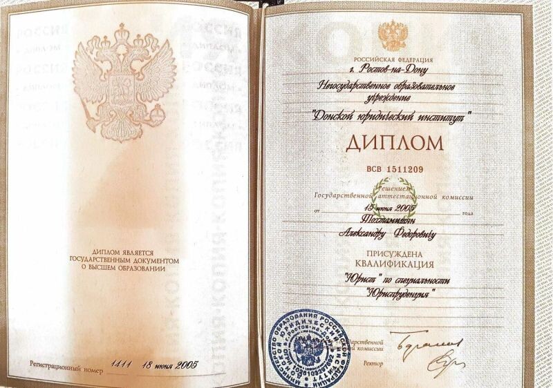 - Донской юридический институт, юриспруденция, 2000–2005 гг.