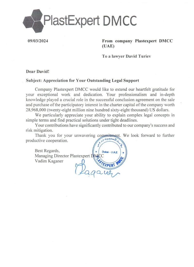 - Благодарность иностранной компании Plastexpert DMCC (с 2024 г.).
