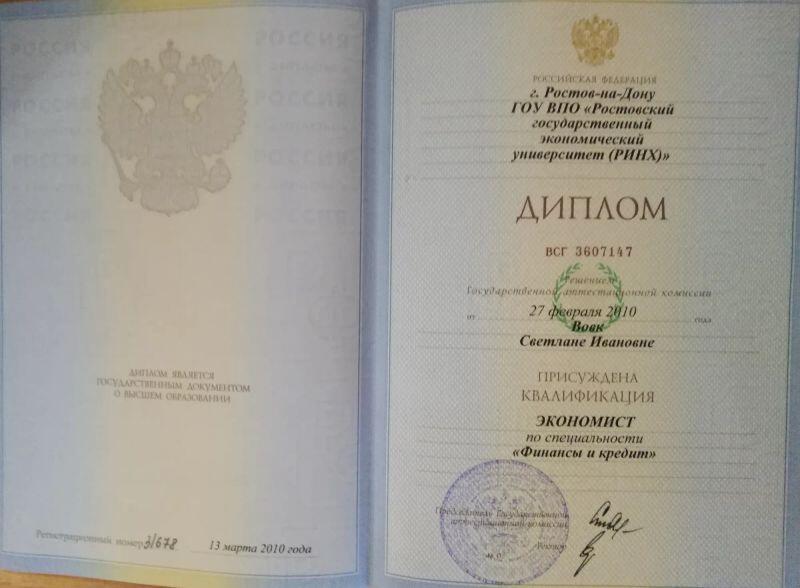 - ГОУ ВПО «Ростовский государственный экономический университет», экономист, 2004 г.