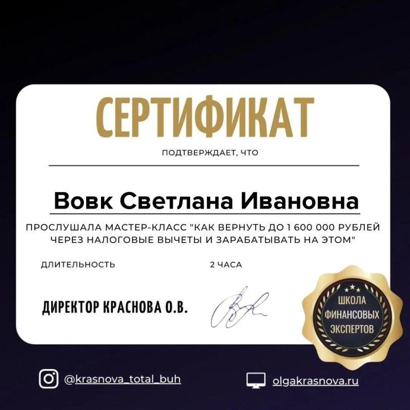 ► Связаться с Вовк Светланой Ивановной и заказать услугу можно за пару минут. Просто нажмите на кнопку «Связаться со специалистом» и заполните короткую форму.
