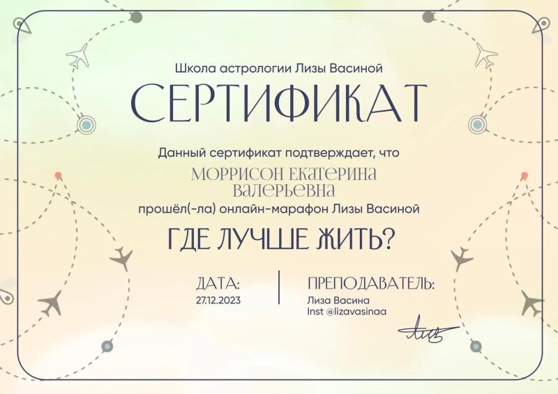 - Школа астрологии Лизы Васиной, онлайна-марафон «Где лучше жить?», 2023 г.