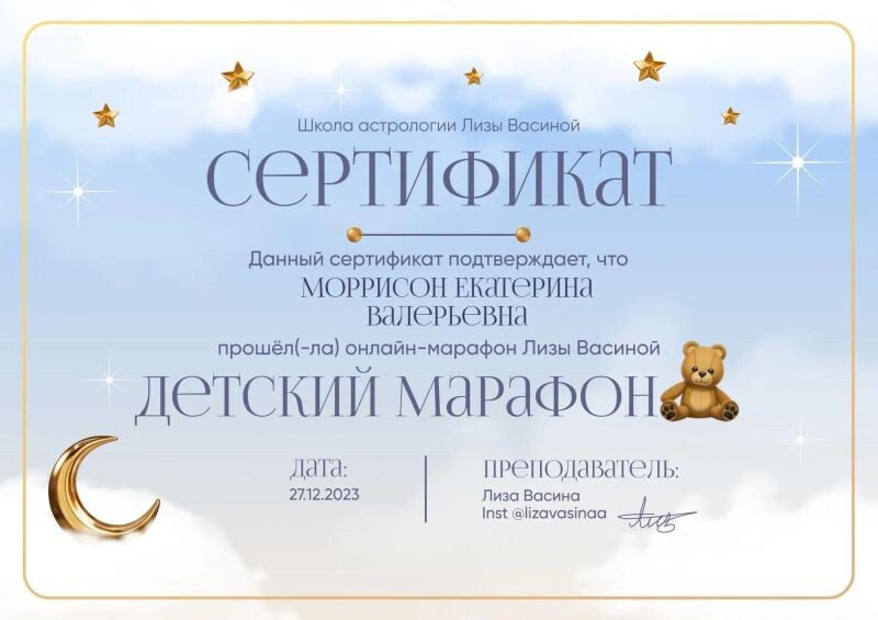 - Школа астрологии Лизы Васиной, онлайна-марафон «Детский марафон», 2023 г.