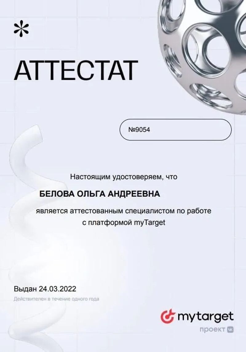 - Digital академия «Практика», курс по таргетированной рекламе, 2021 г.