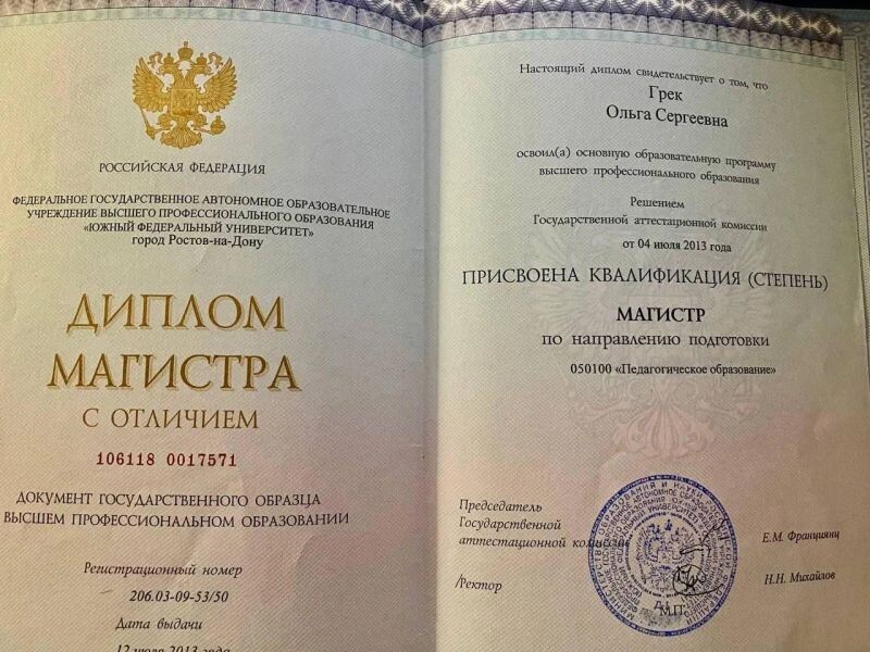 - ЮФУ, факультет естествознания, направление подготовки «Педагогическое образование», магистратура, 2011–2013 гг.