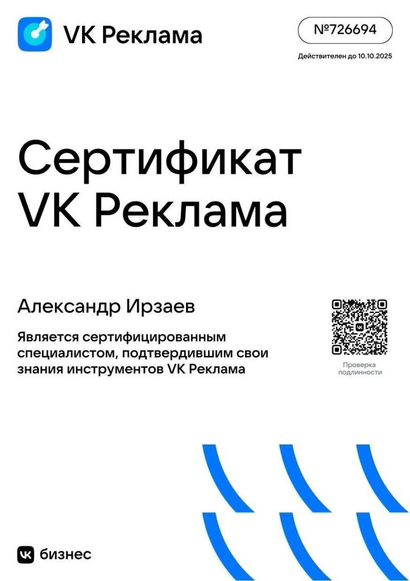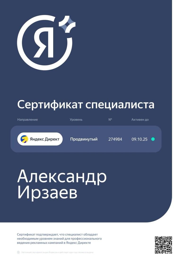 ► Ирзаев Александр Вадимович работает территориально: Кировский, а также дистанционно.