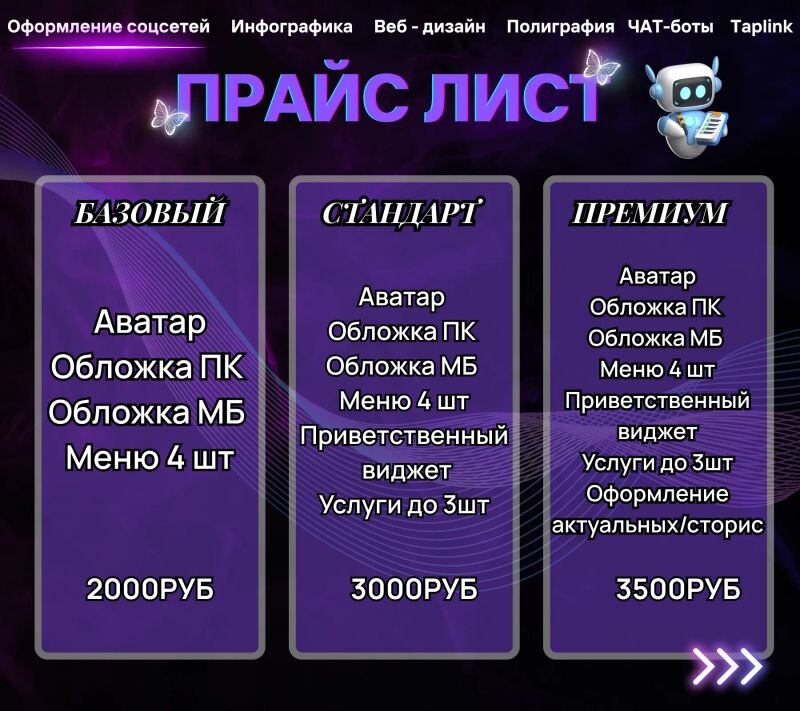 - Дизайн аккаунтов 2000 - 3500 ₽ за усл.
