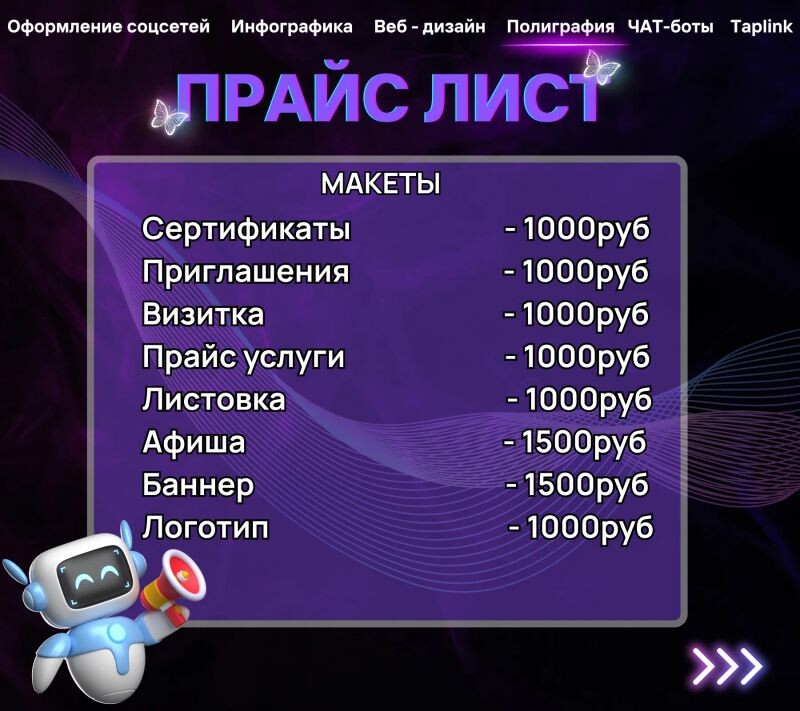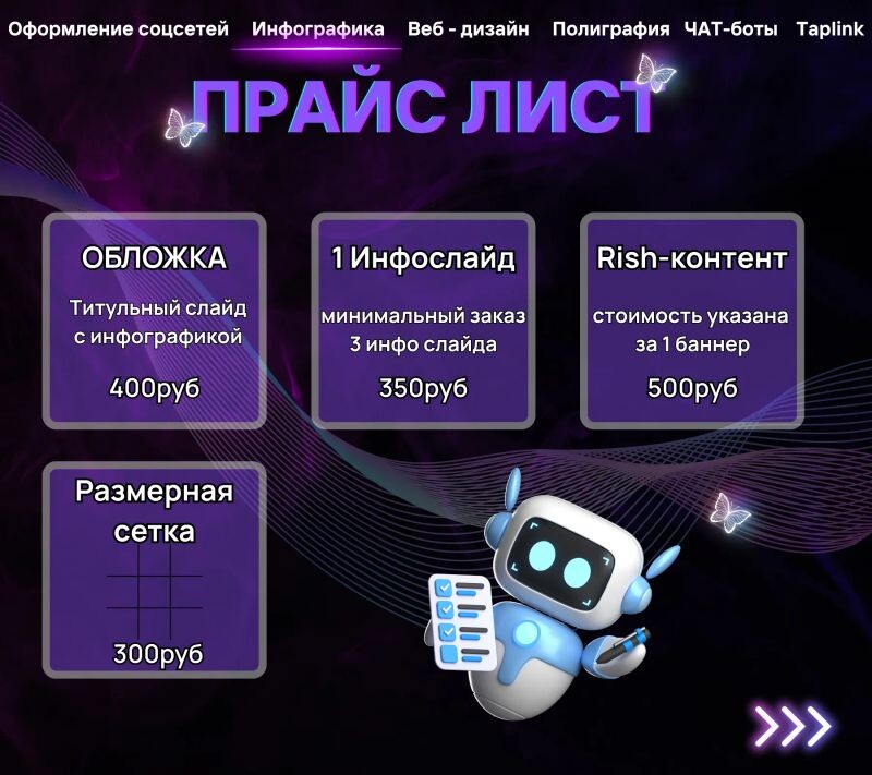 - Инфографика 400 - 500 ₽ за усл.Обложка - 400 рублей