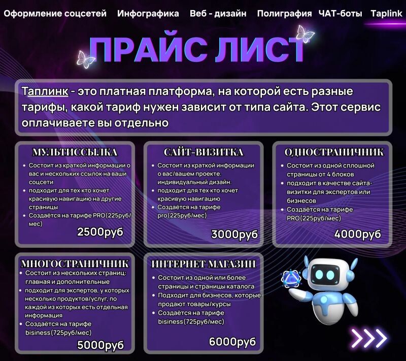 - Оформление Taplink 2500 - 6000 ₽ за усл.